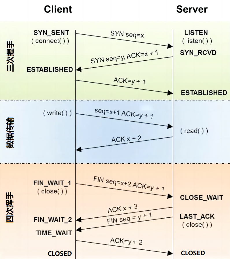 - 数据传输完毕:通过FIN和ACK的交换,确保所有数据都已传输和接收完毕,没有遗漏。